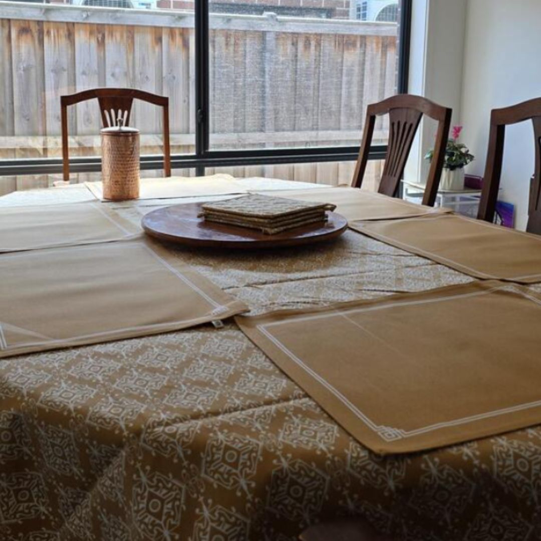 Elevate your dining space with The Yard House wipeable & anti-slip, cotton table cloth – a plastic-free, sustainable alternative to PVC tablecloth.