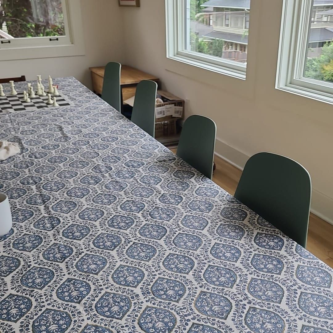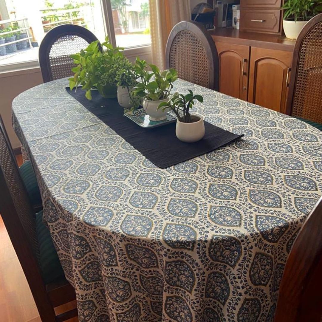 Elevate your dining space with The Yard House wipeable & anti-slip, cotton table cloth – a plastic-free, sustainable alternative to PVC tablecloth.