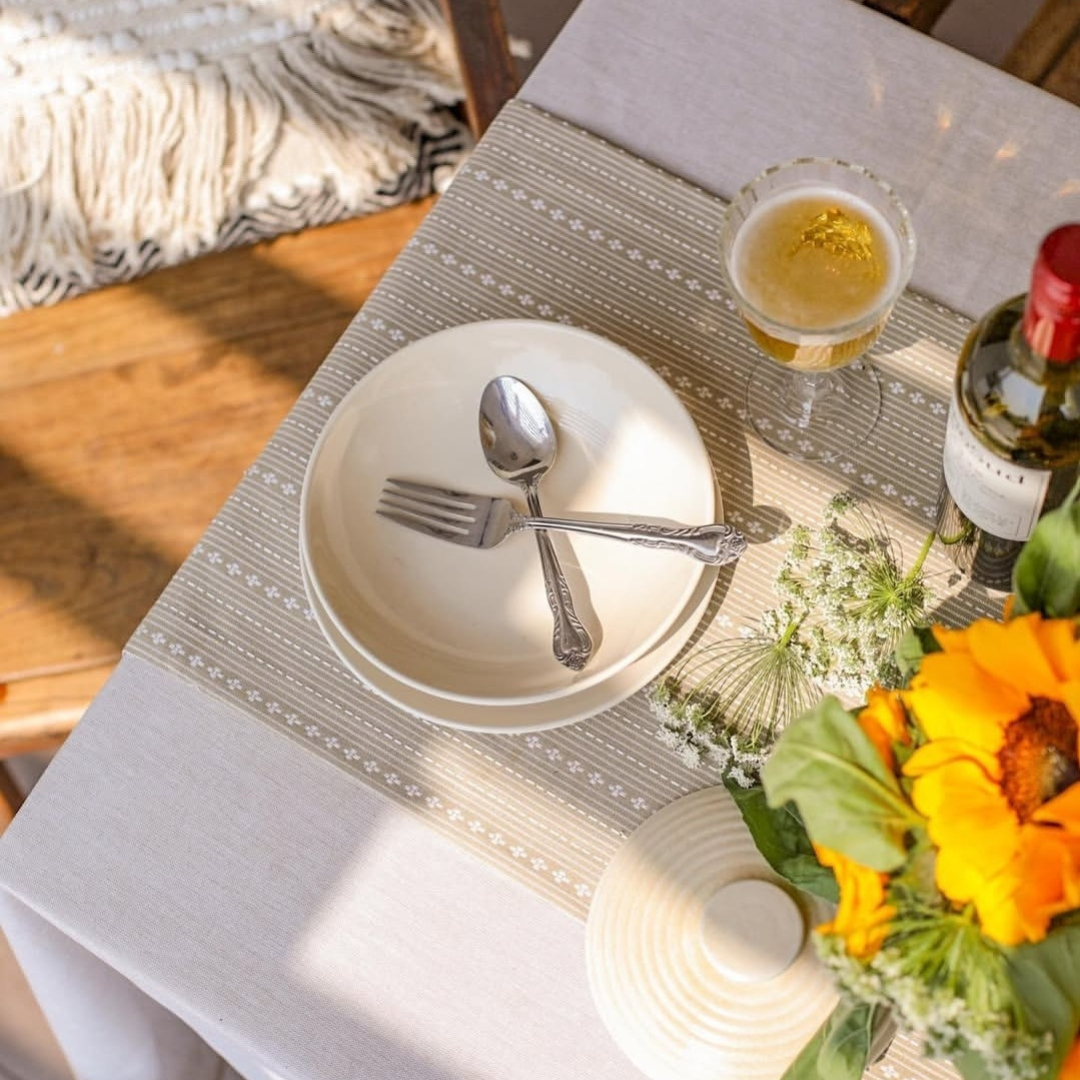 Elevate your dining space with The Yard House wipeable & anti-slip, cotton table cloth – a plastic-free, sustainable alternative to PVC tablecloth.